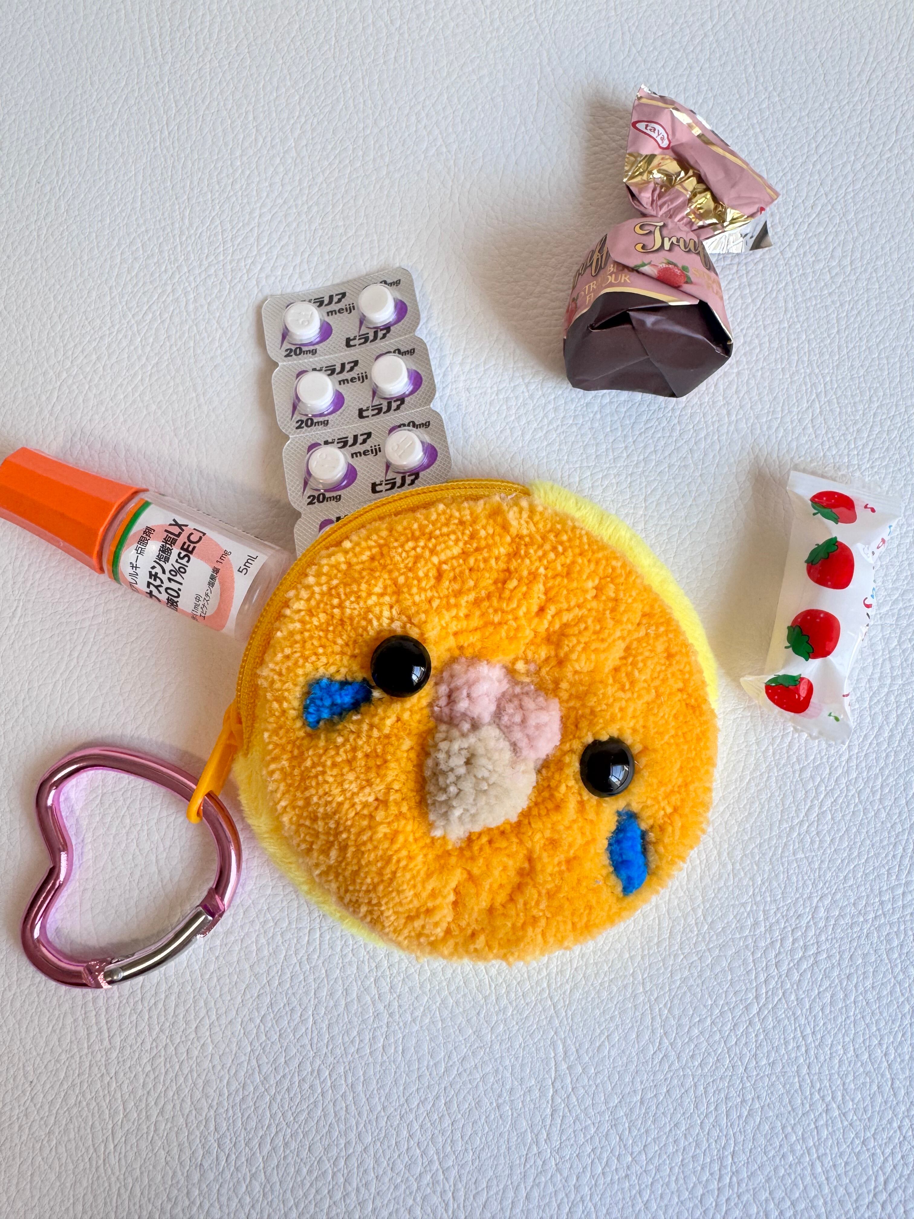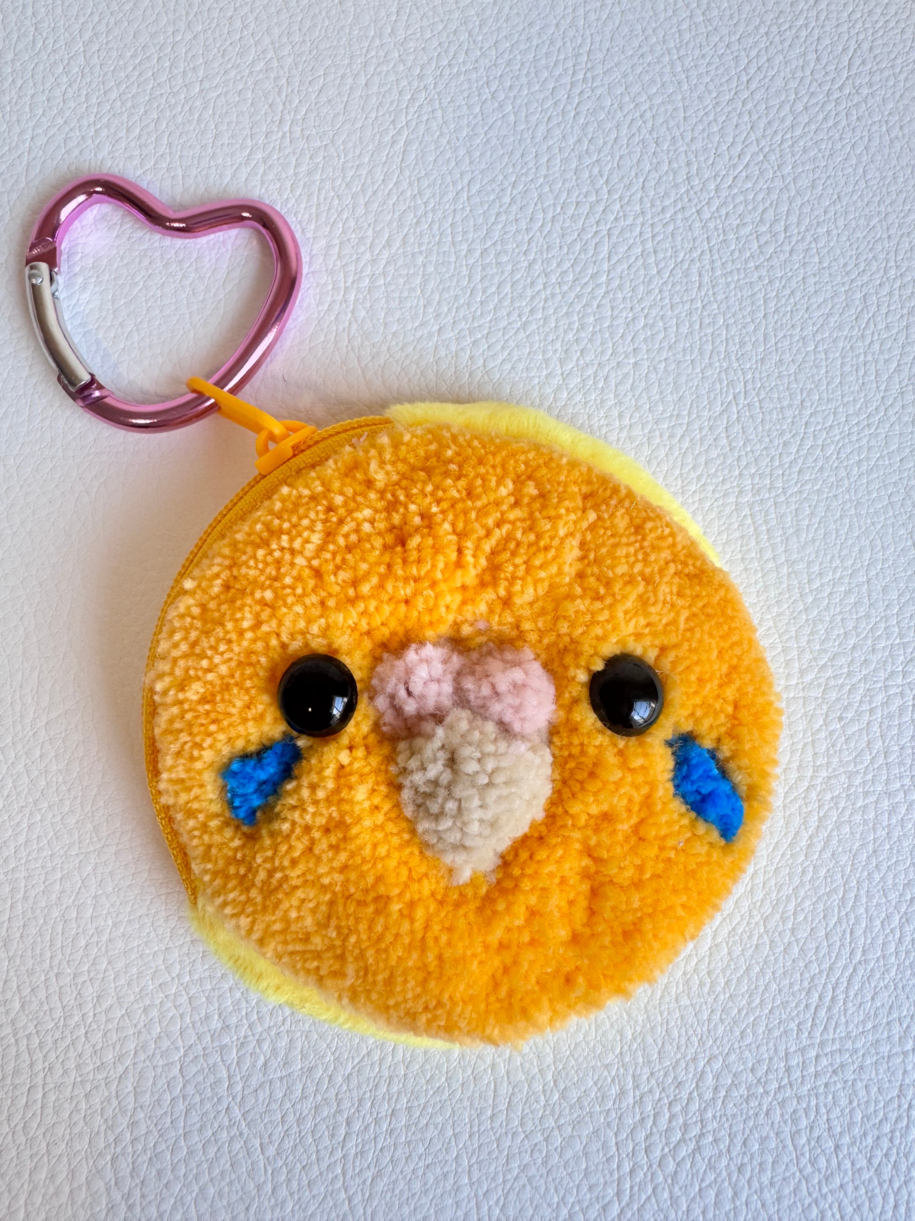 もふもふセキセイインコさんのお顔のミニポーチです。