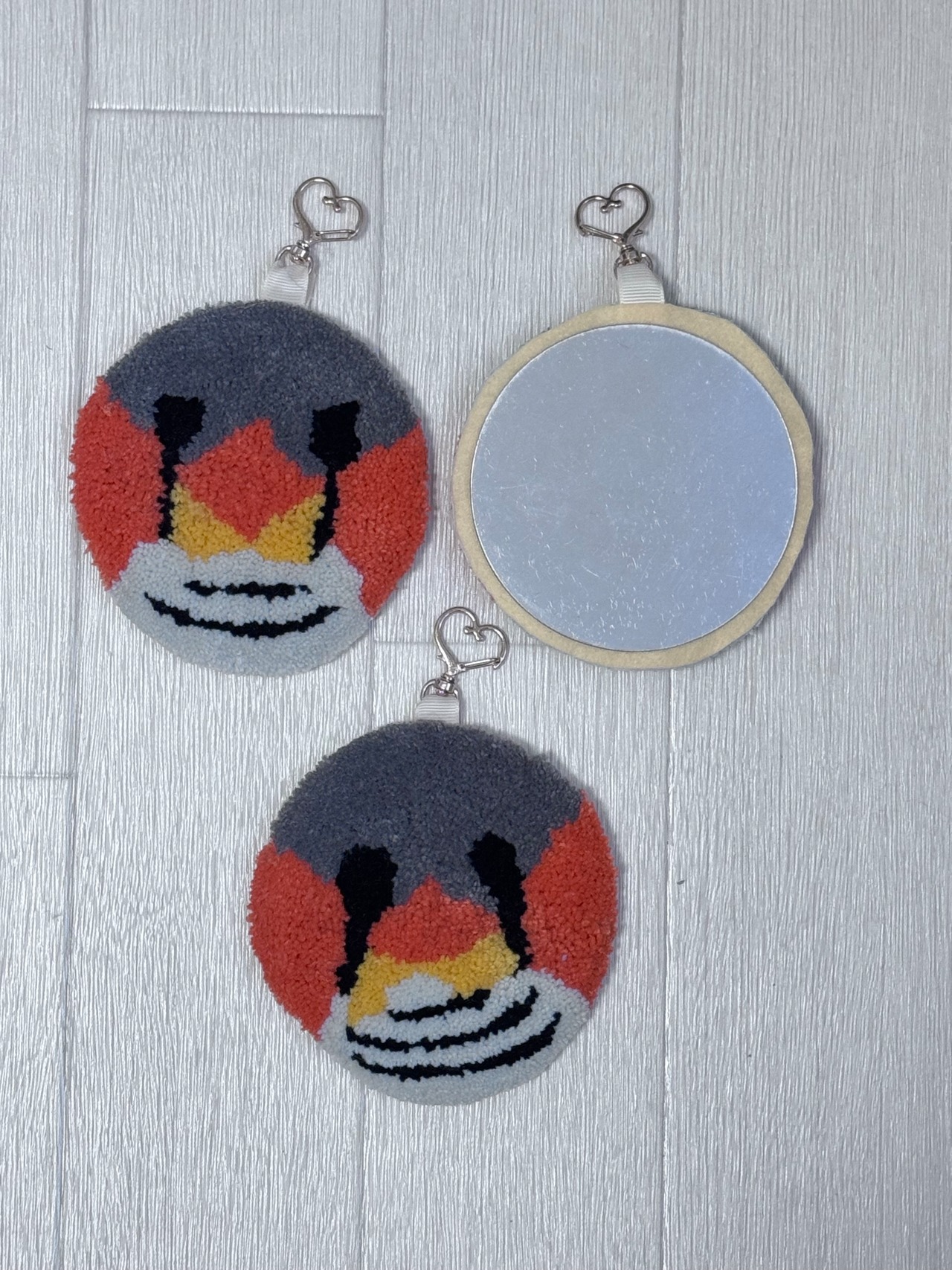 - 素材: 本体アクリル毛糸、プラスチックミラー付き
